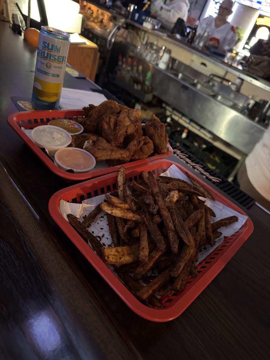THE BEST WINGS I'VE HAD IN 30 YEARS!!!!! HANDS DOWN! I WILL TRAVEL 45 MINUTES FOR THESE ANY DAY! GREAT ATMOSPHERE AND BARTENDERS ARE VERY WELCOMING AND ATTENTIVE.